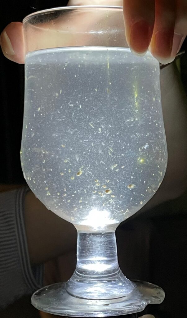 コップに入ったただの海水、かと思いきや、ショックを与えると発光!