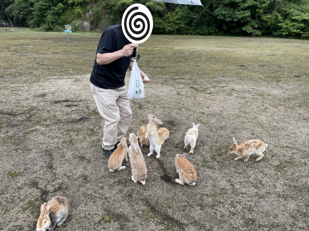 その後もウサギさんたちとたわむれながら、ちょいとまじめな島内散策に出発。