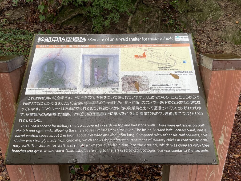 ほかにも毒ガス貯蔵庫、幹部防空壕、砲台、発電所等、廃墟となっても敢えて残されている。