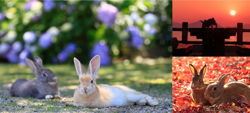その後もウサギさんたちとたわむれながら、ちょいとまじめな島内散策に出発。