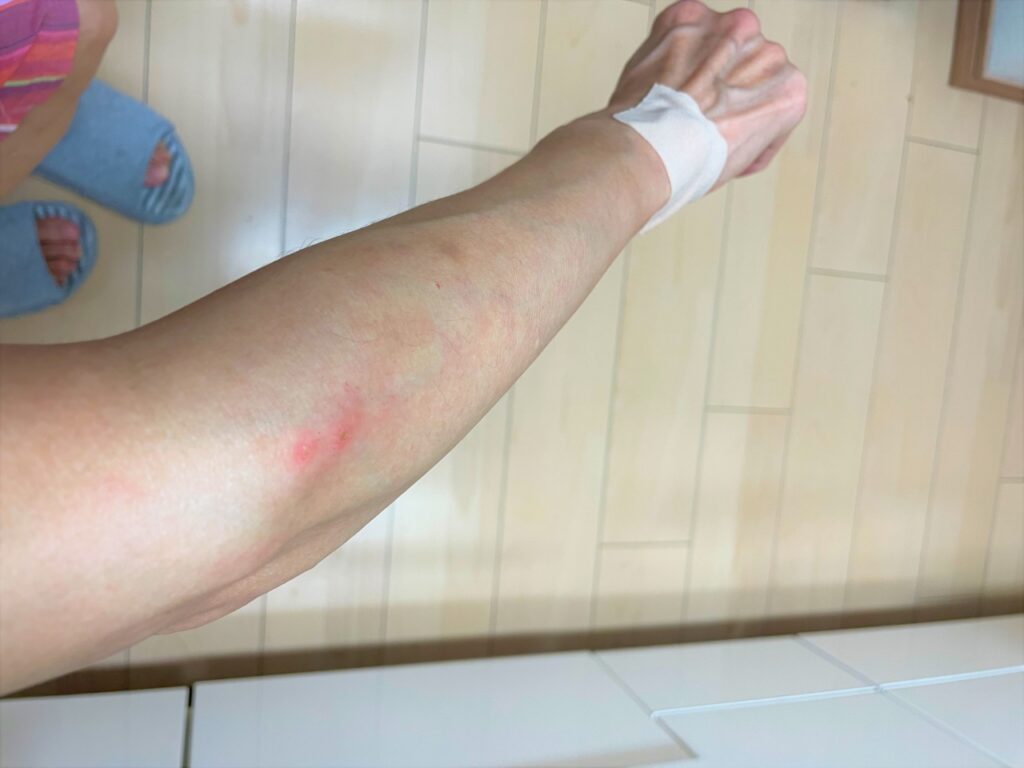 そしてその翌日の夜、腕の内側にポツポツと赤い発疹が・・・