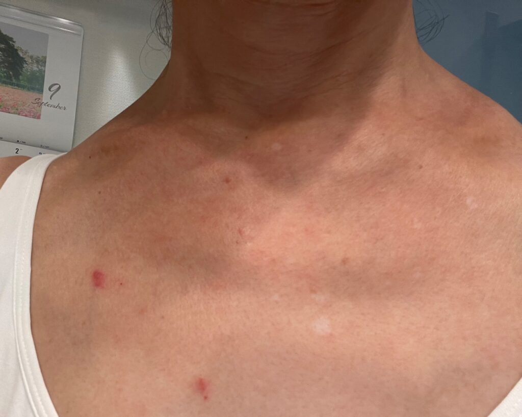 私は薬疹だと思いましたが、医師は「それにしては発疹するのが遅い」と。
